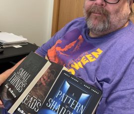 Anne Sturtevant sneaking a peek at Small Things while at work. Shh!